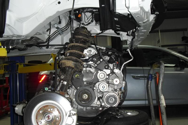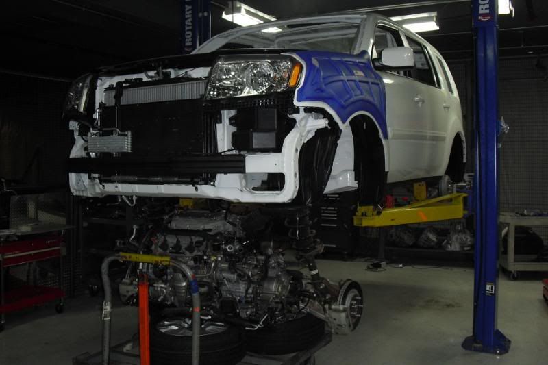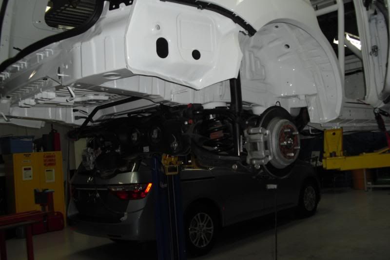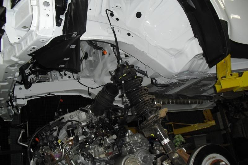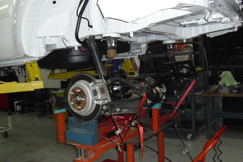 Today we will install the front subframe with all the motor/suspension/brakes already attached. It could be rolling on it's own wheels by tomorrow sometime.