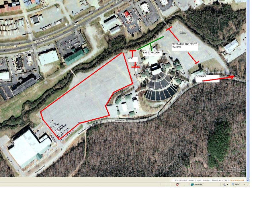 There is a fence there, however the fence seperates the VIP (east) lot with the Large (west) parking lot. In between the two lots is a fenced area known as Backstage parking. The two fences will be opened up and we will have cars come from the east lot and set up grid in between the two fences in the backstage area. This way we have as much lot as possible for course design.