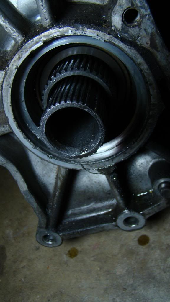 This is where the transfer case is sync on to the tranny. notice the metal shavings on it??
